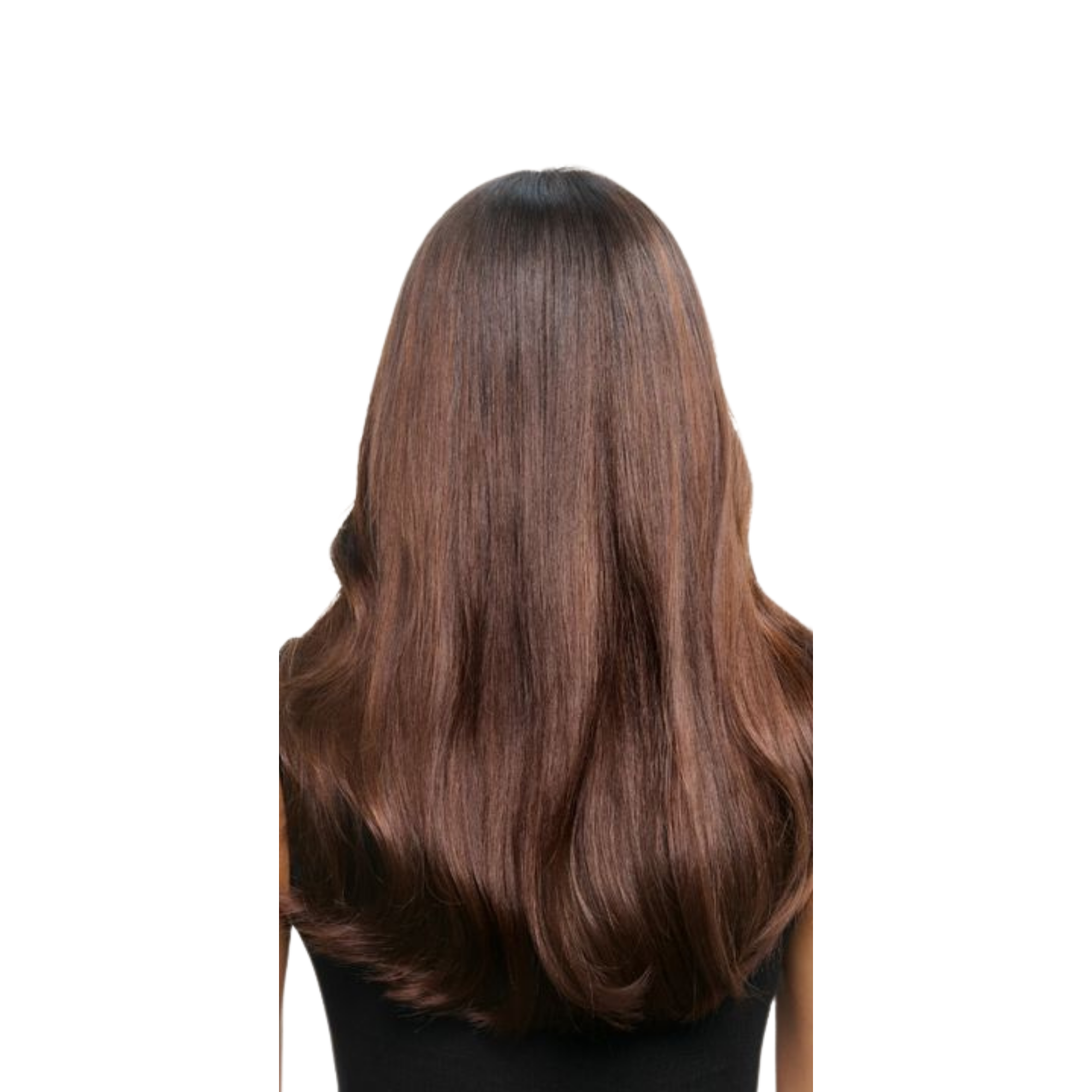 Hair appears visibly smoother, shinier, and more refined, with reduced frizz and a healthier overall look. The transformation reflects improved manageability and a more polished finish without weighing hair down.